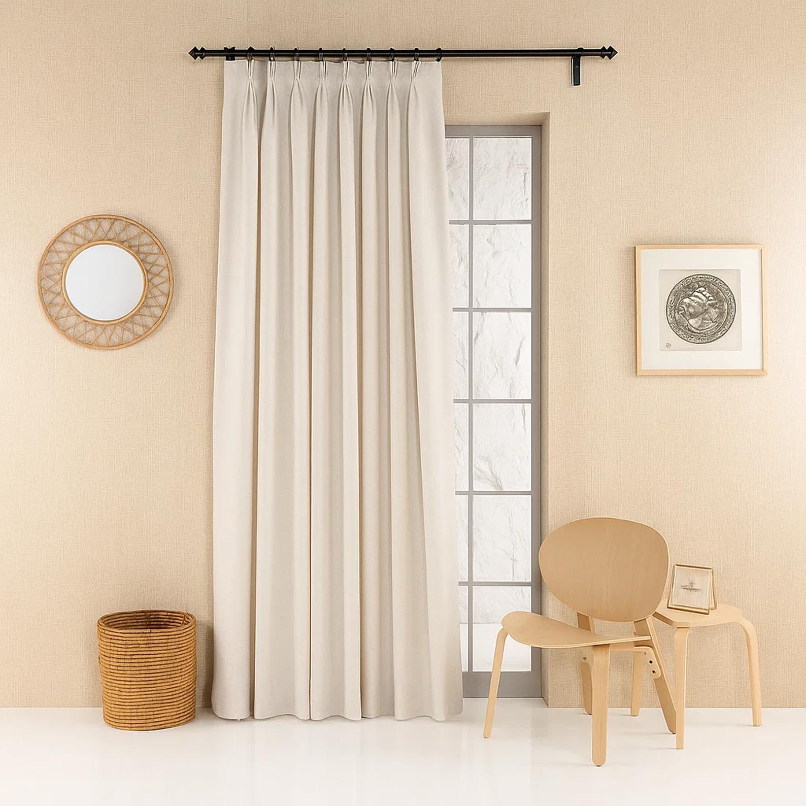 Pleated Double Pinch Pleated Linen Curtains